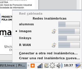 En trisquel 1.0 inclúese o NetworkManager, que permite configurar redes WEP, WPA1 WPA2 y otras. El icono que lo configura todo está en la bandeja de sistema: